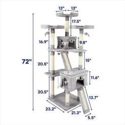 Frisco 73-in Cat Tree With Hammock, Condo, Lounge Basket, Top Perch & Bed