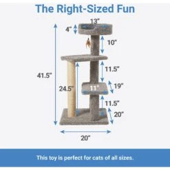 Give your kitty the perfect spot to lounge on! This two-story cat tree is handcrafted in the USA with solid wood posts for a sturdy construction and feel. It’s wrapped in your cat’s favorite material—real, household-grade carpet. Yup—plush, thick carpet for your feline to enjoy to the fullest. The fully-wrapped sisal rope scratching post is perfect for stretching and getting their scratch on. Also, this cat tree just takes 1 easy step to assemble for your kitty to hop right on.