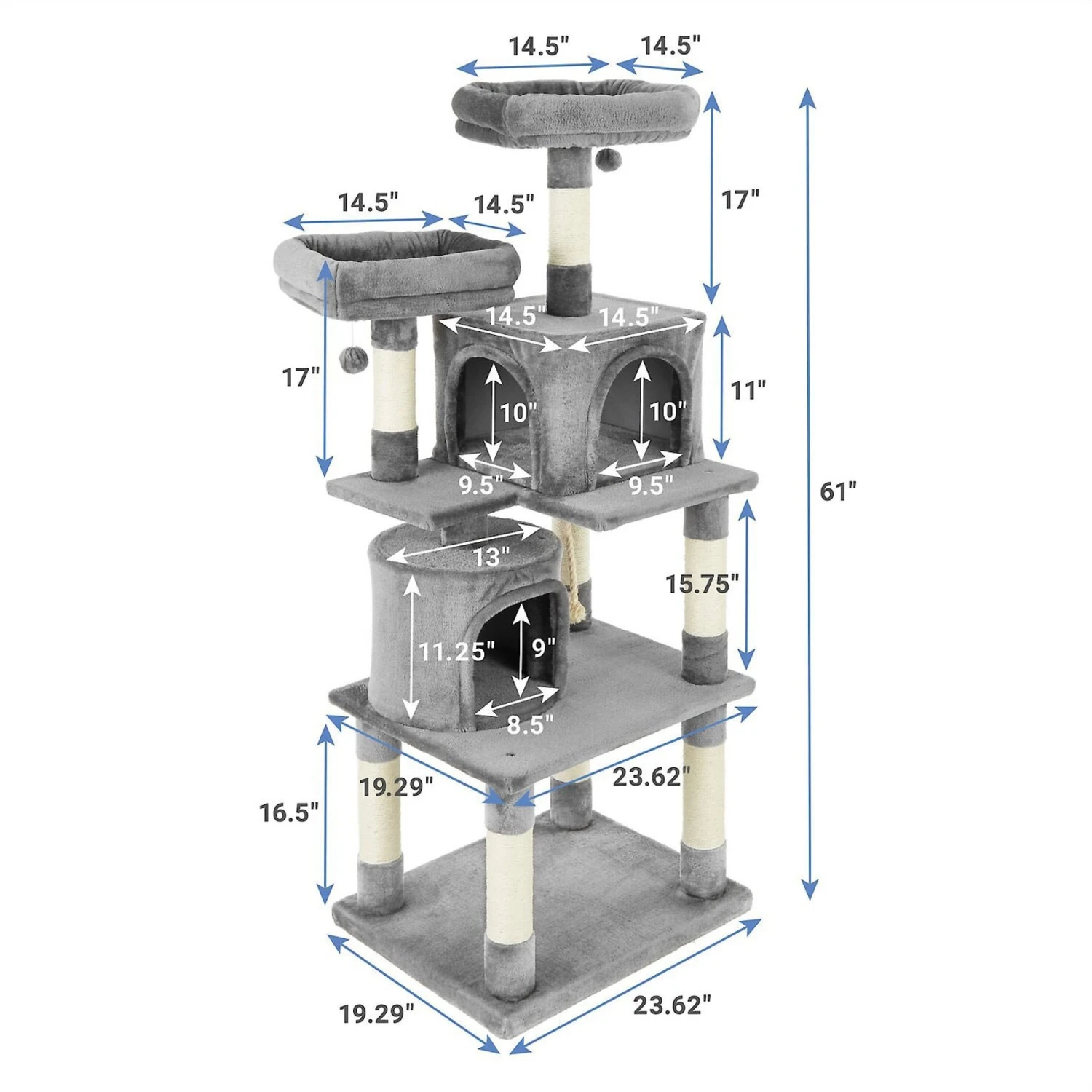 - From Frisco by Chewy. This deluxe cat tree is made with a plush fabric that feels luxuriously soft and has a swanky, velvety look. Stands 61 inches tall.