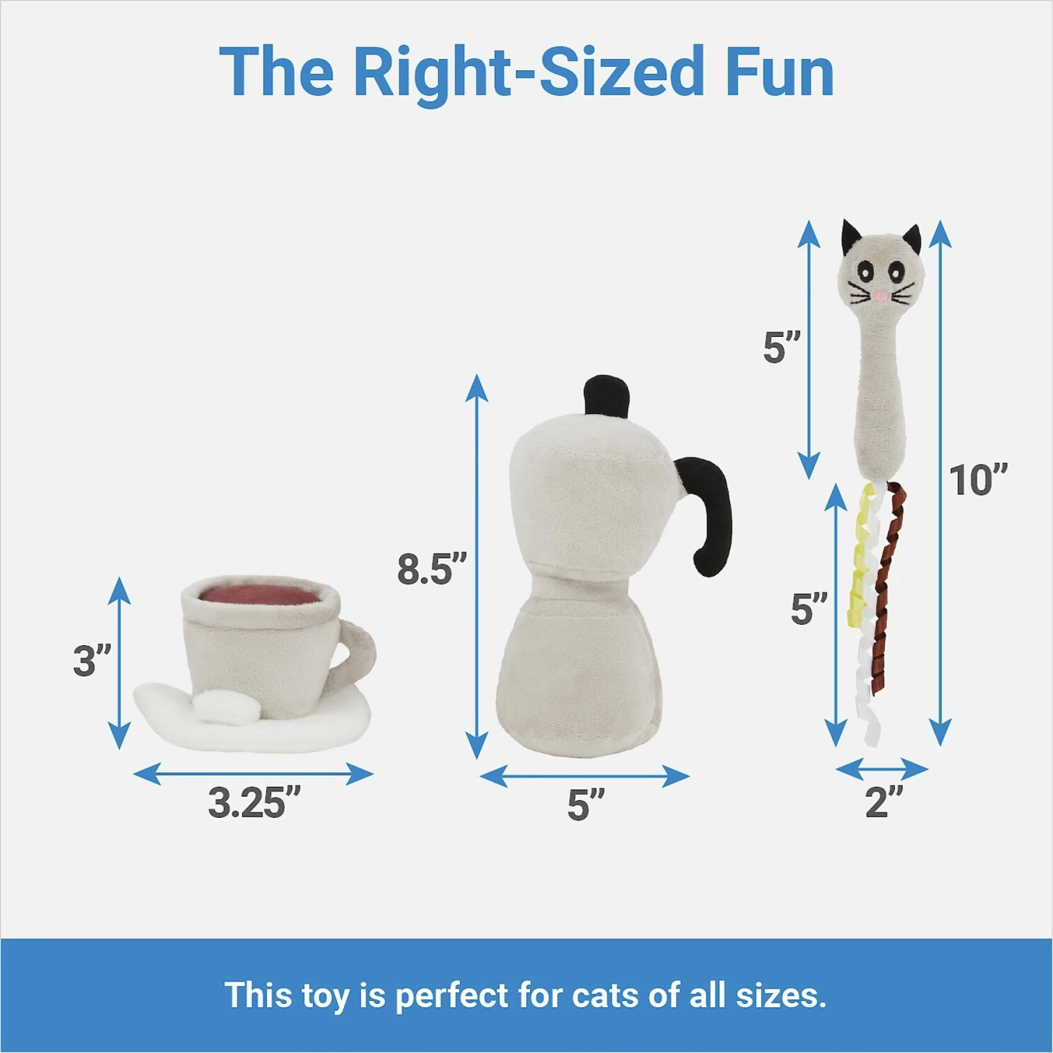 - Coffee set is ideal for both solo play sessions and interactive play dates with cat parents.