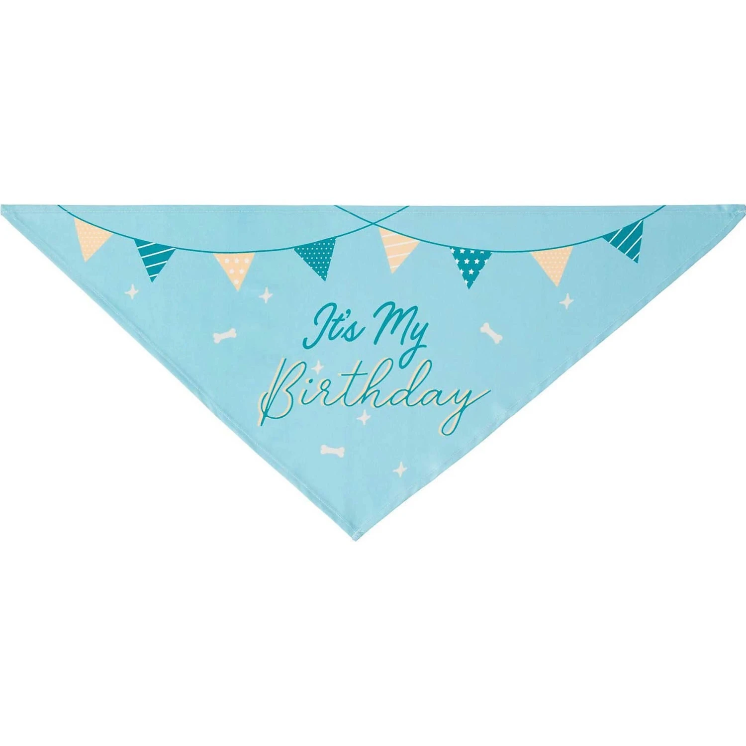 - Fun “It’s my Birthday” print with pennant graphics on blue material lets everyone know who the birthday pet is.