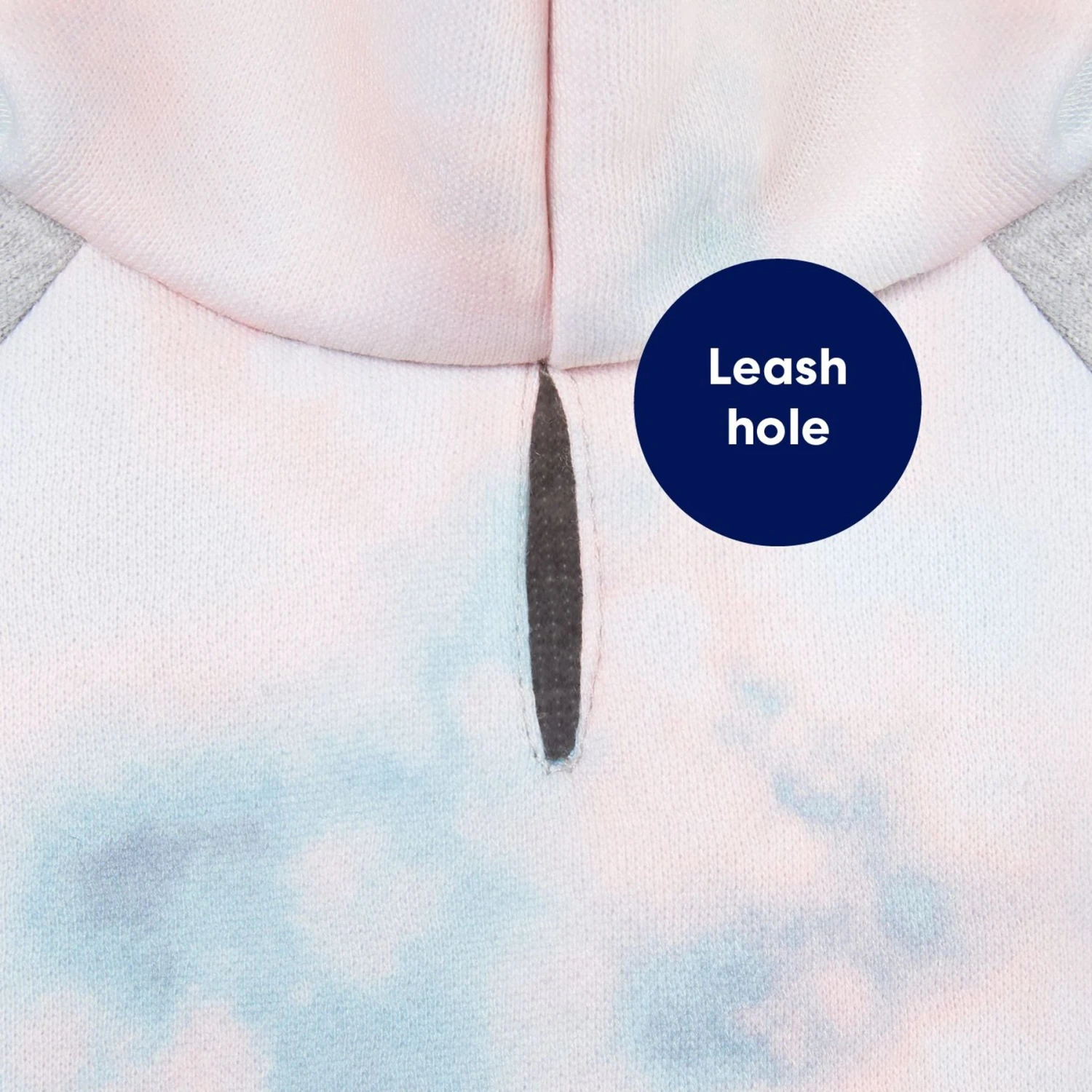 - From Frisco by Chewy. Think pink with this tie-dye wash hoodie. It’s a fun, eye-catching way for your pet to stay warm this winter while also keeping their mood mellow.