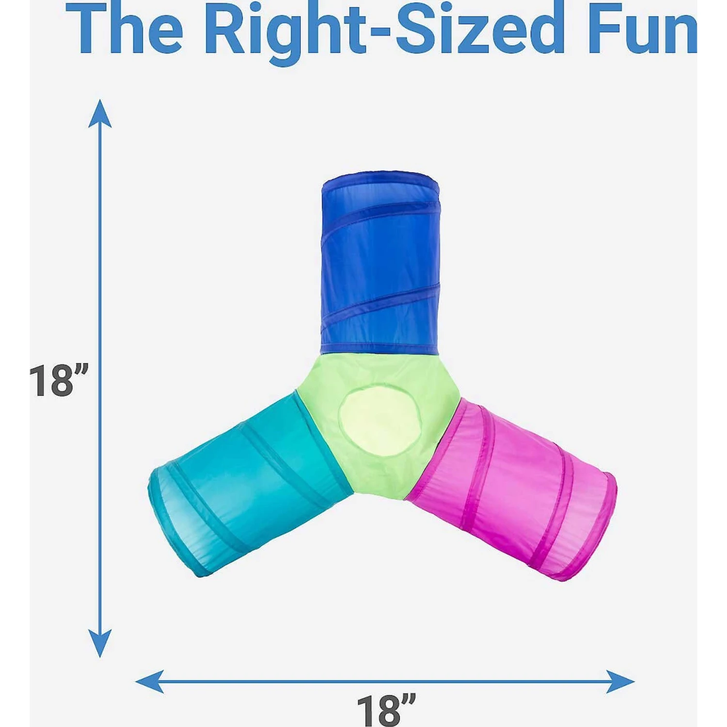 Get ready for some feline fun with your kitty with Hartz Delectables Stew Chicken & Tuna Lickable Cat Treat and Frisco Peek-a-Boo Cat Chute Cat Toy, Colorful Tri-Tunnel. The treat is a deliciously unique, single-serve, wet treat cats purr for. Your cat will enjoy this yummy combination of tender, real chicken and tuna chunks in a rich sauce. Make every treat time something truly special with this lickable, tasty treat your cat will crave. Every cat loves exploring a tunnel, so give your feline all the fun and feels of spending the day as a furry cave explorer. Just pop it open and then fold it down when you need to store it. Cats also love hiding and napping inside it, so you might want to leave it around.